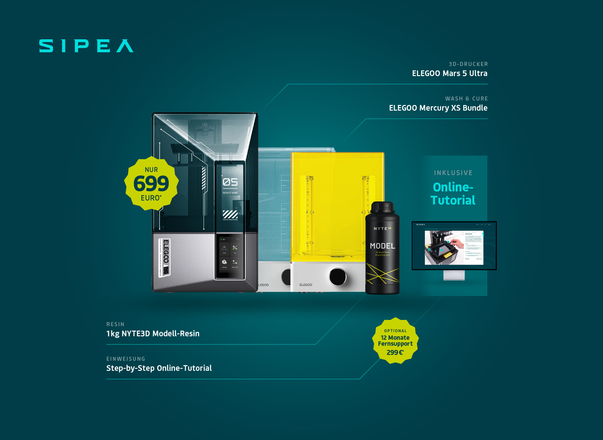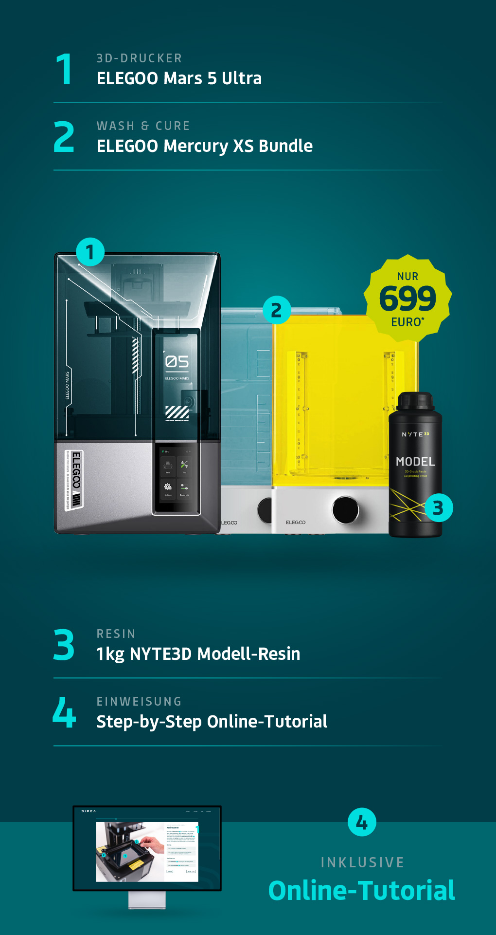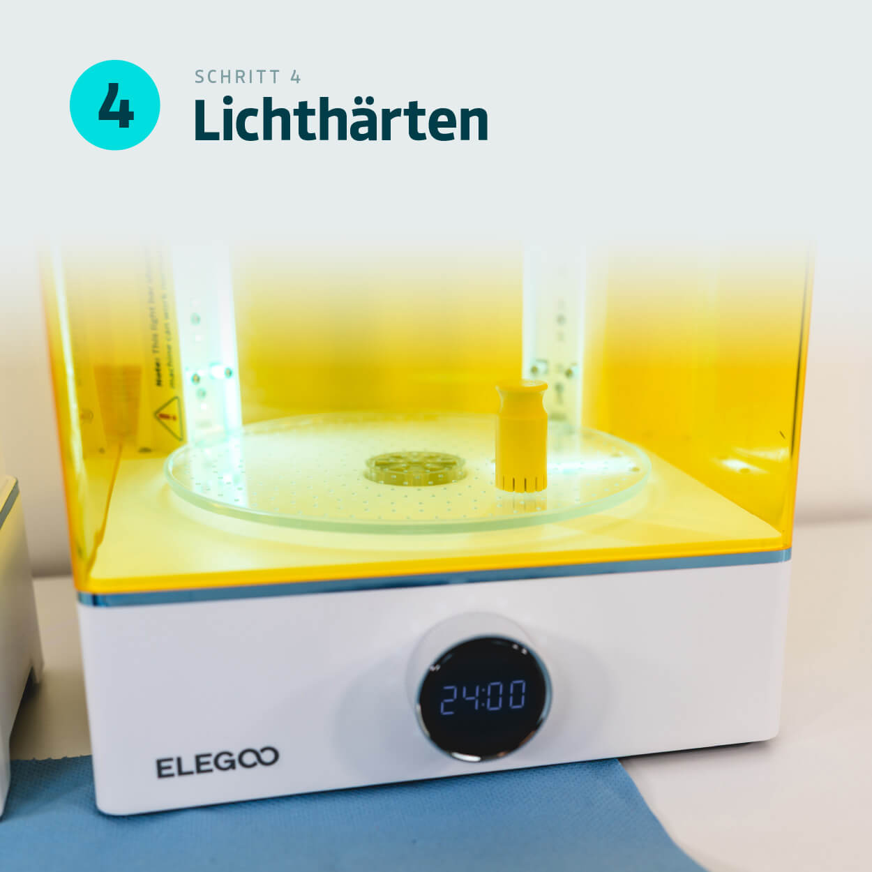 - UV-Aushärtungssystem: 405nm LED-Array mit Rundum-Belichtung für gleichmäßige Nachhärtung