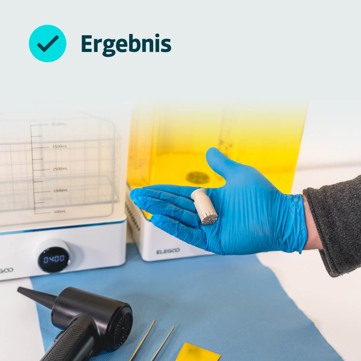 Drucker, Waschgerät und Nachhärtungseinheit sind technisch perfekt aufeinander abgestimmt. So entsteht eine durchgängige Prozesskette, vom ersten bis zum letzten Schritt.